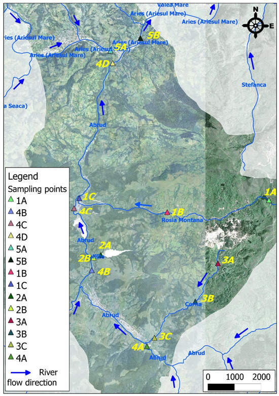 The water samples were collected quarterly during 2024 from different points in the nearby rivers throughout the Roșia Montana area, as shown in Table 2.