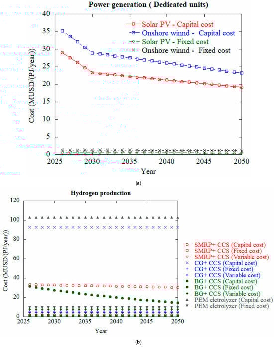 Among the alternative fuels, hydrogen is considered one of the most promising sustainable options for the maritime sector [], owing to its highest energy content per unit mass [] and its ability to produce zero emissions during operation [,]. Nonetheless, its widespread adoption is hindered by major technical challenges related to storage and transportation, primarily due to its low volumetric energy density and the need for extensive supporting infrastructure []. The debate over the future of sustainable fuels like hydrogen fundamentally hinges on striking a balance between cost-effectiveness and the practicality of onboard energy storage, widely recognized as a key technical barrier []. However, in addition to challenges related to infrastructure and economic feasibility, the scalability and capacity of hydrogen production must also be critically considered []. It is essential to recognize that hydrogen’s significance extends well beyond its role as a zero-emission fuel []. As the only sufficiently accessible and scalable technology for enabling sector coupling, hydrogen plays a pivotal role in optimizing energy systems by aligning production and consumption across diverse sectors []. Without the integration of hydrogen, achieving economy-wide deep decarbonization would not only be highly impractical but also prohibitively expensive [].