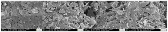 The surface morphology of the biochar samples was investigated using SEM, as shown in Figure 4.