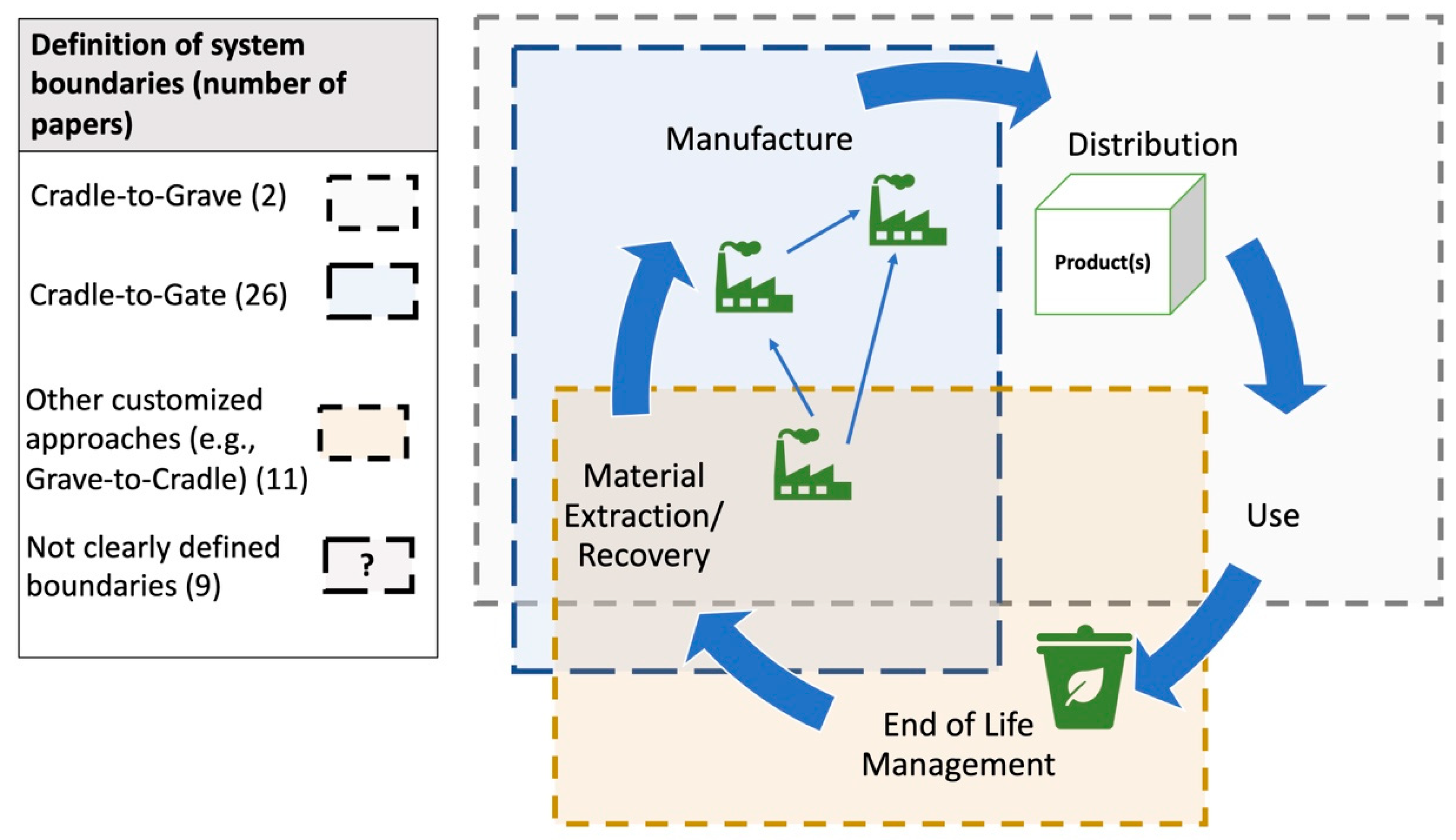 - Goal and Scope: focus, functional unit, definition of system boundaries, LCA approaches, and use of other sustainability assessment methods;