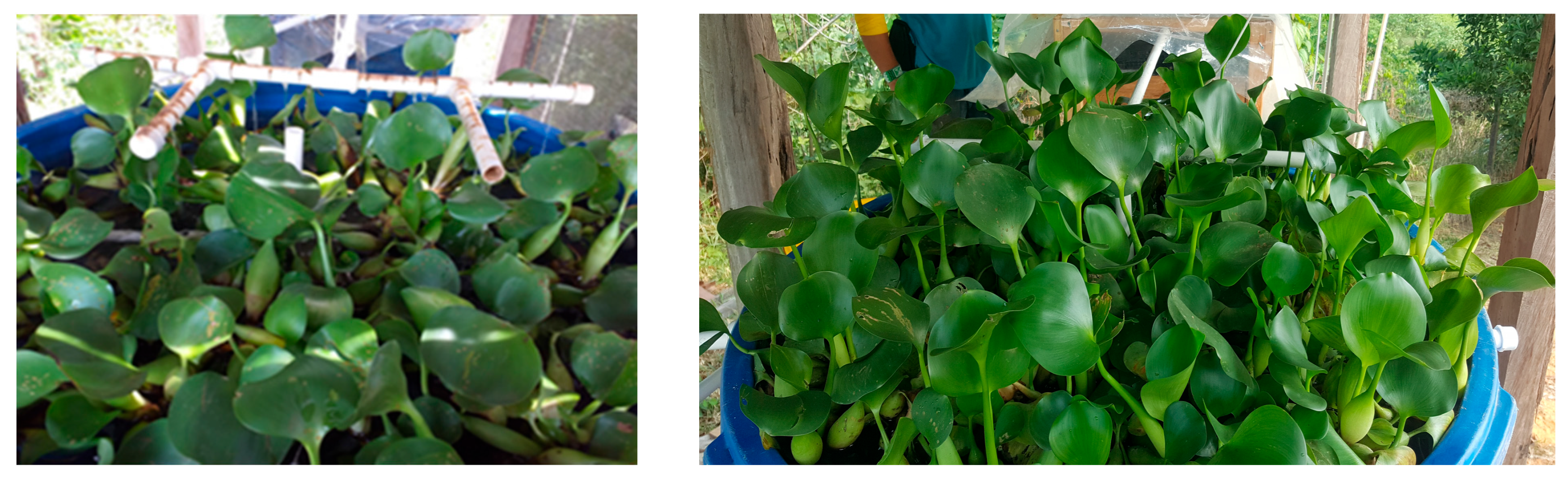 - MAL, R.; Isolino Sampaio, P.; Parolin, P. Biofilter Efficiency of Eichhornia crassipes in Wastewater Treatment of Fish Farming in Amazonia. Phyton 2015, 84, 244–251. [Google Scholar] [CrossRef]