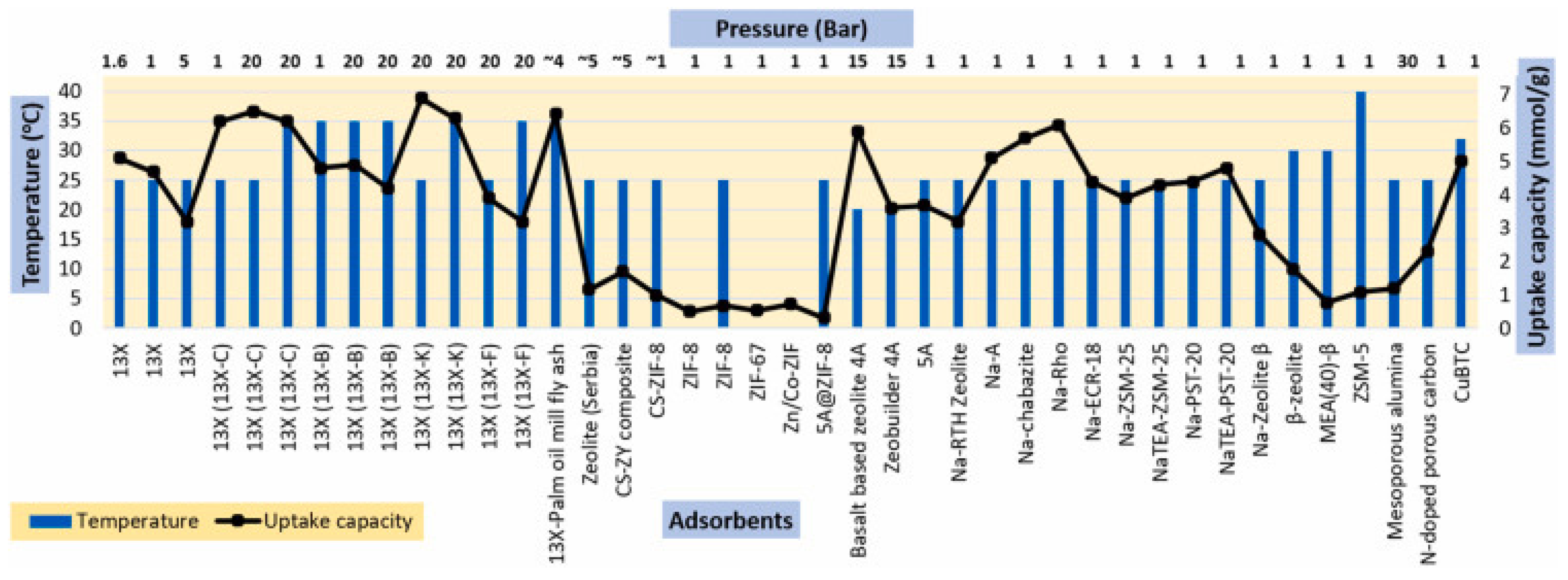 Figure 3. Different adsorbents and their CO2 capacity (adapted with permission from Ref. [30]. 2021, Monalisa Mukherjee and Vivek Mishra).