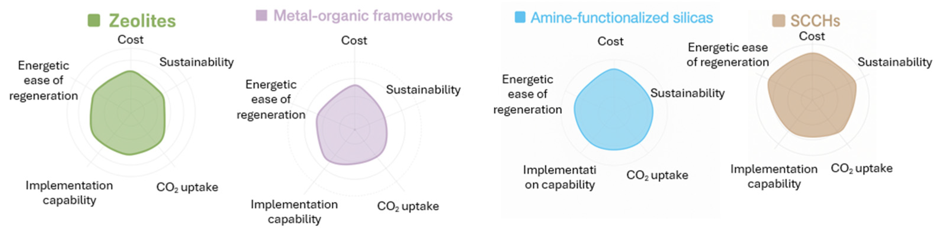 Recent literature [30] reports multiple approaches to re-engineering zeolites, including (i) synthesizing zeolites from sustainable precursors and processes; (ii) fabricating complex hierarchical zeolite geometries via 3D printing; (iii) modifying zeolites by fusing alkali metals into their frameworks; (iv) producing natural polymer–zeolite composite materials; and (v) developing hybrid composites that combine zeolites with other sorbents.