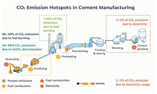- IEA, W. Cement Technology Roadmap 2009–Carbon Emissions Reductions Up to 2050. World Business Council on Sustainable Development (WBCSD), International Energy Agency (IEA). 2009. Available online: https://iea.blob.core.windows.net/assets/897b7ad9-200a-4314-b870-394dc8e6861a/CementTechnologyRoadmap-CarbonEmissionsReductionsupto2050.pdf (accessed on 18 April 2025).