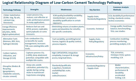 - Camargo-Bertel, A.A.; Hincapie, D.; Pugliese, V.; Gonzalez-Quiroga, A.; Pupo-Roncallo, O. Decarbonizing the cement industry in Latin America and the Caribbean: A comprehensive review of strategies, barriers, and policies. Energy Convers. Manag. X 2025, 26, 100956. [Google Scholar] [CrossRef]
