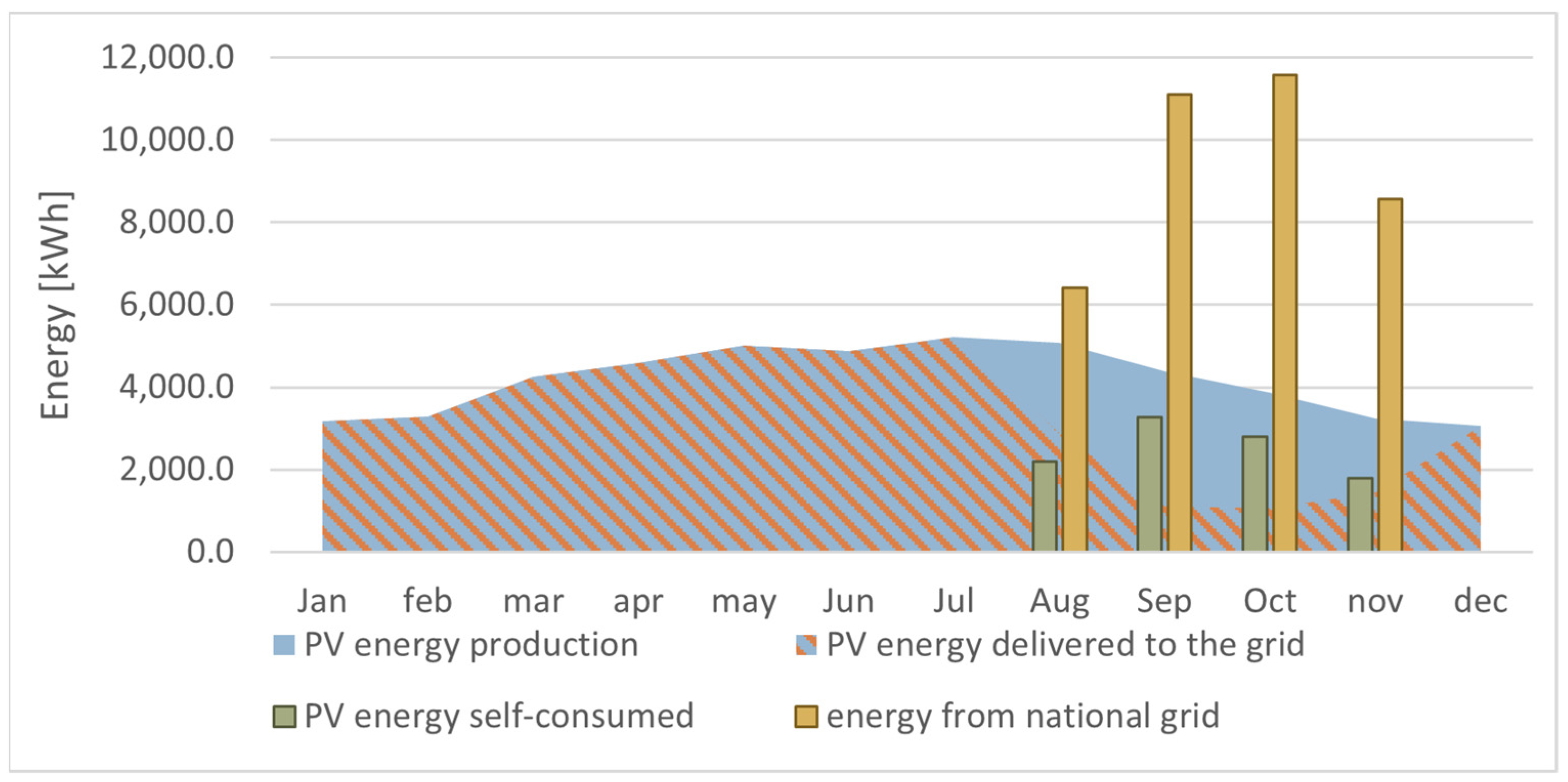 | EB | PV Energy stored by BESS and self-consumed by olive mill |