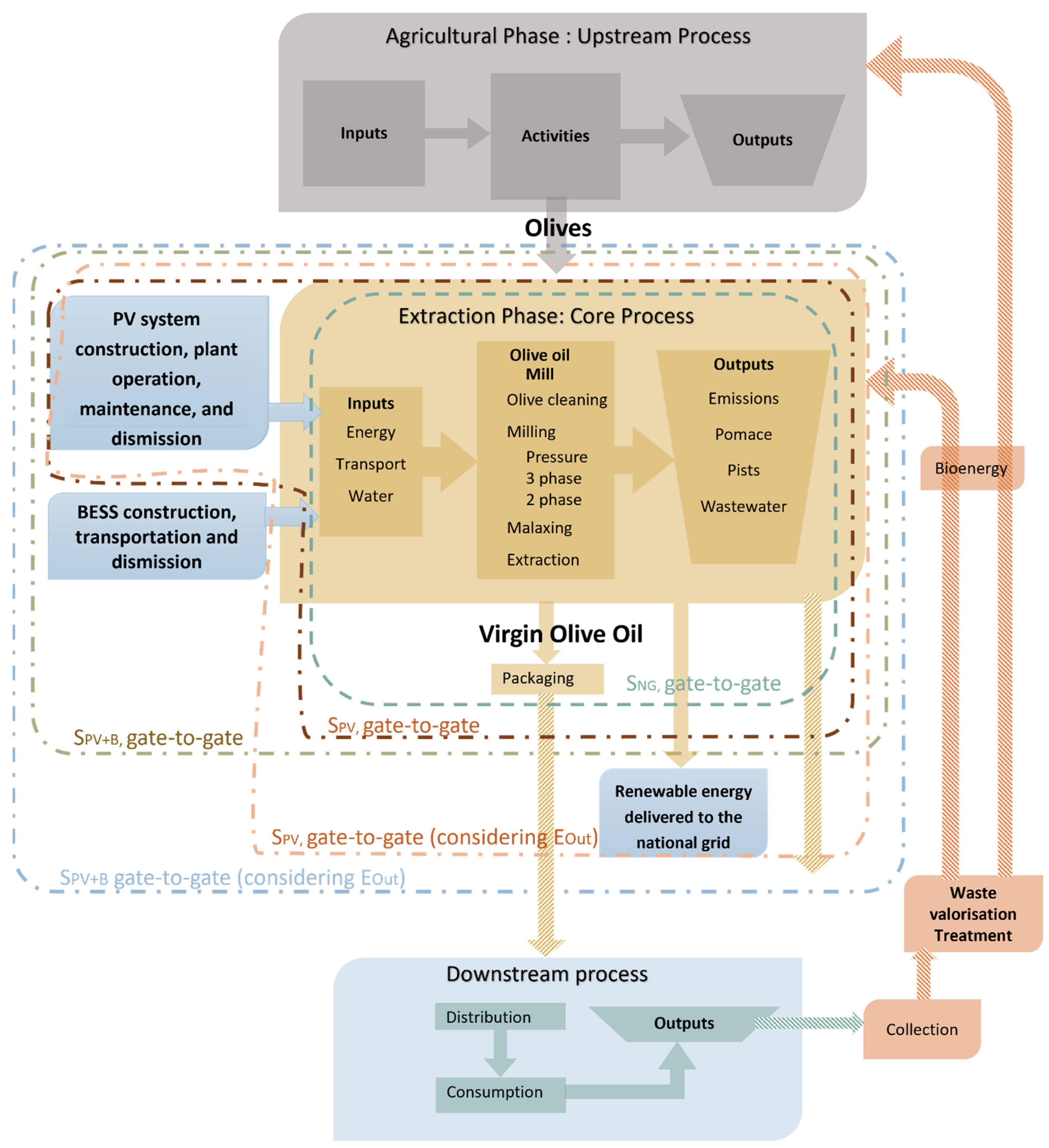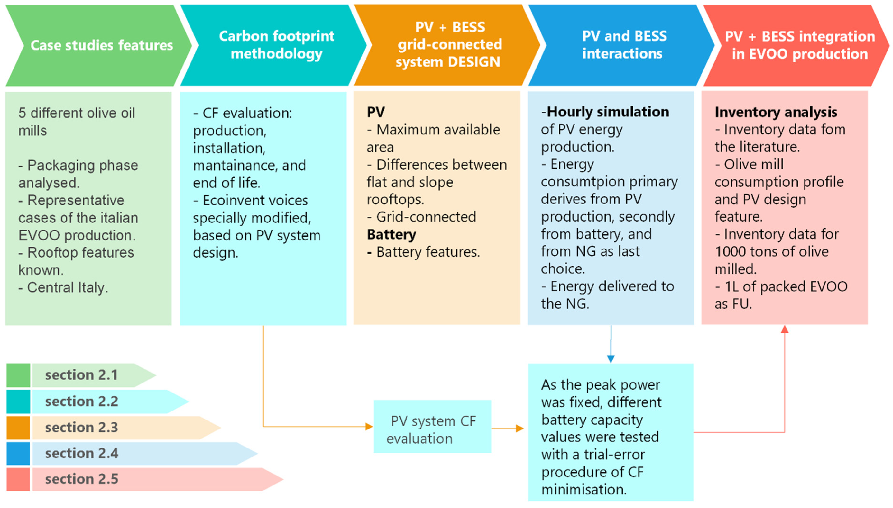 - defining PV and BESS design parameters, to minimise the CF of EVOO production;