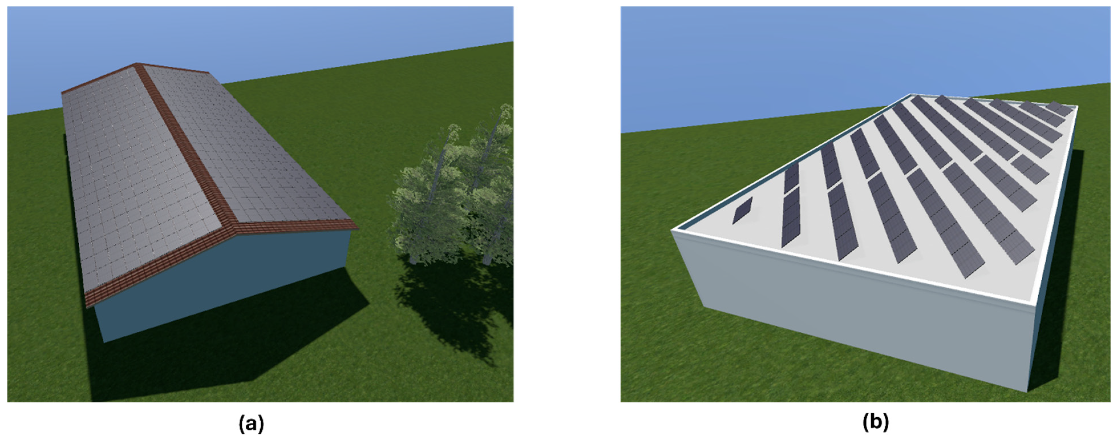 - The mills have been geo-localised; thus, the location of the existing buildings under study provided an opportunity to examine the feasibility of simulating the location of agrisolar systems on their rooftops. However, the irradiation conditions are generally sub-optimal due to the orientation, slope, and size of the roof of the existing agro-industrial buildings.