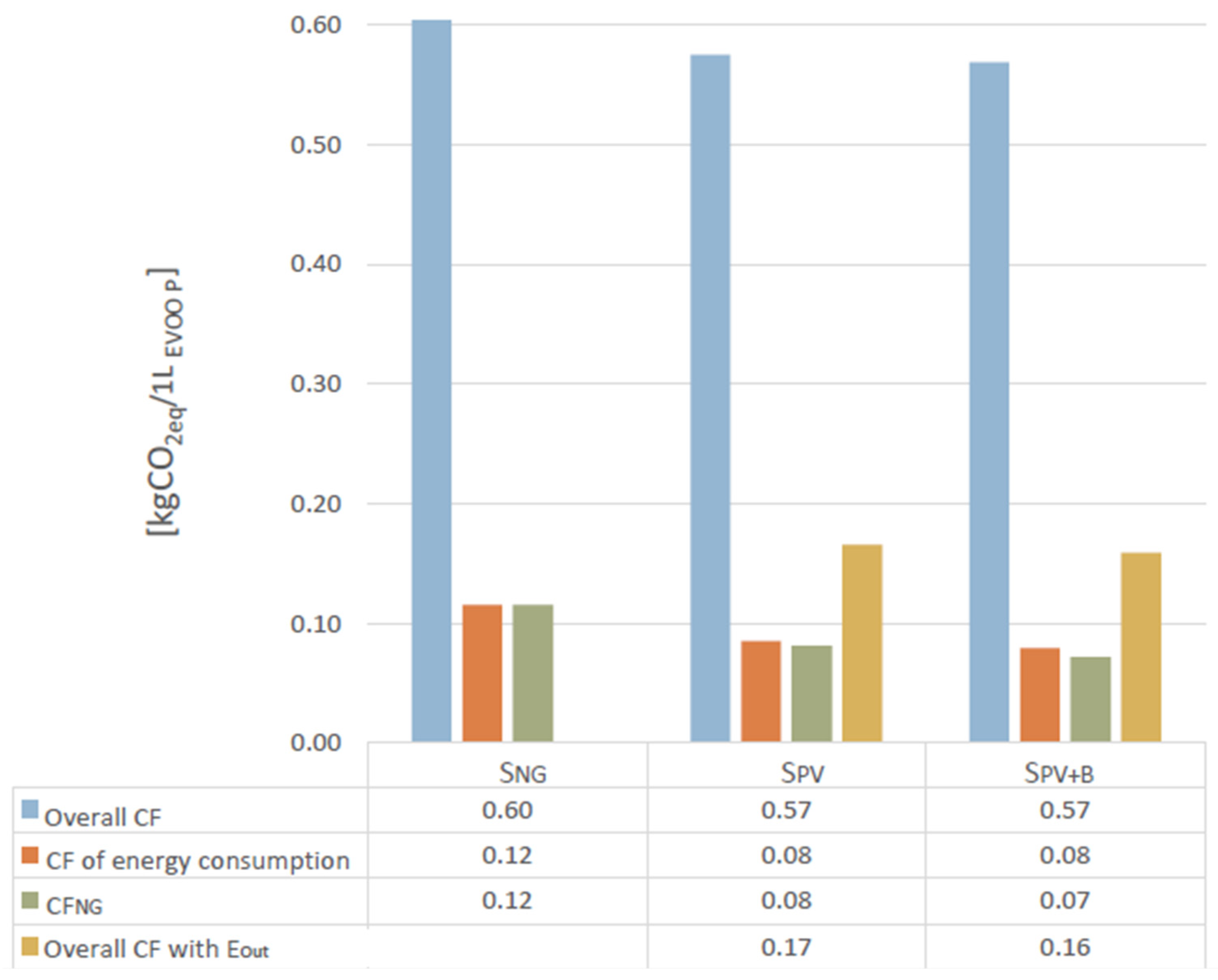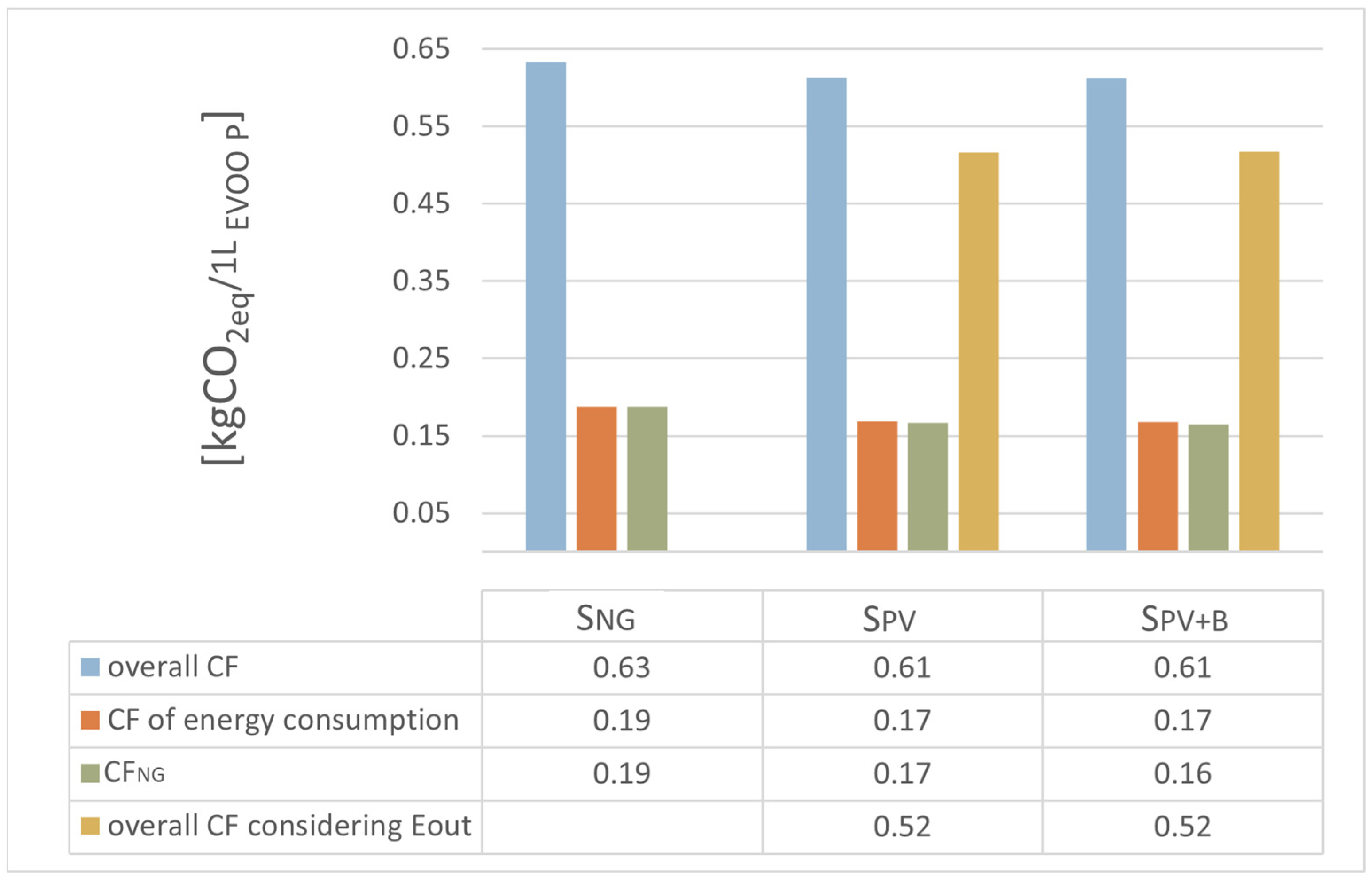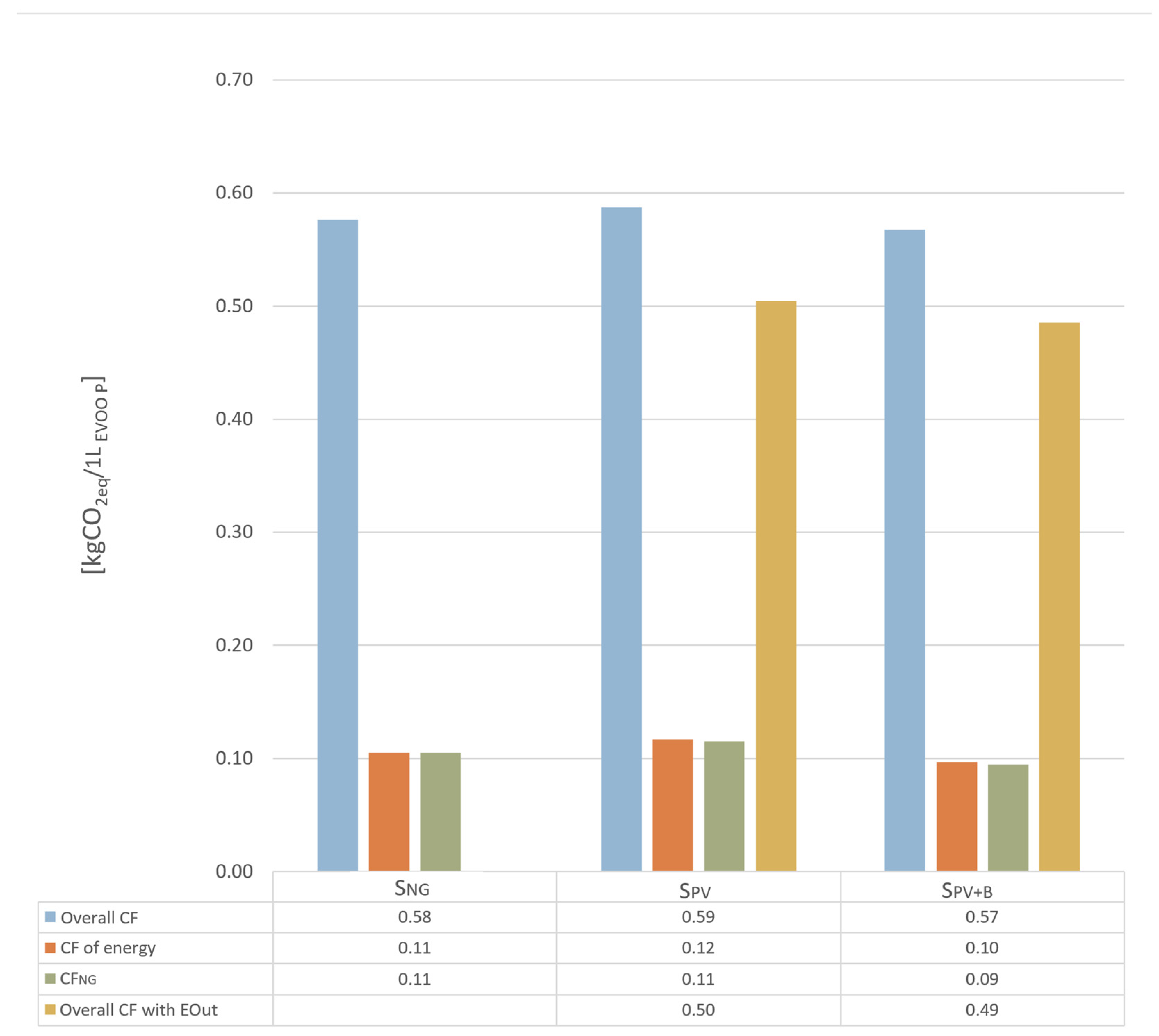 - performing an overall assessment of optimal conditions for reducing CF in EVOO production, with regard to the PV and PV+BESS system.