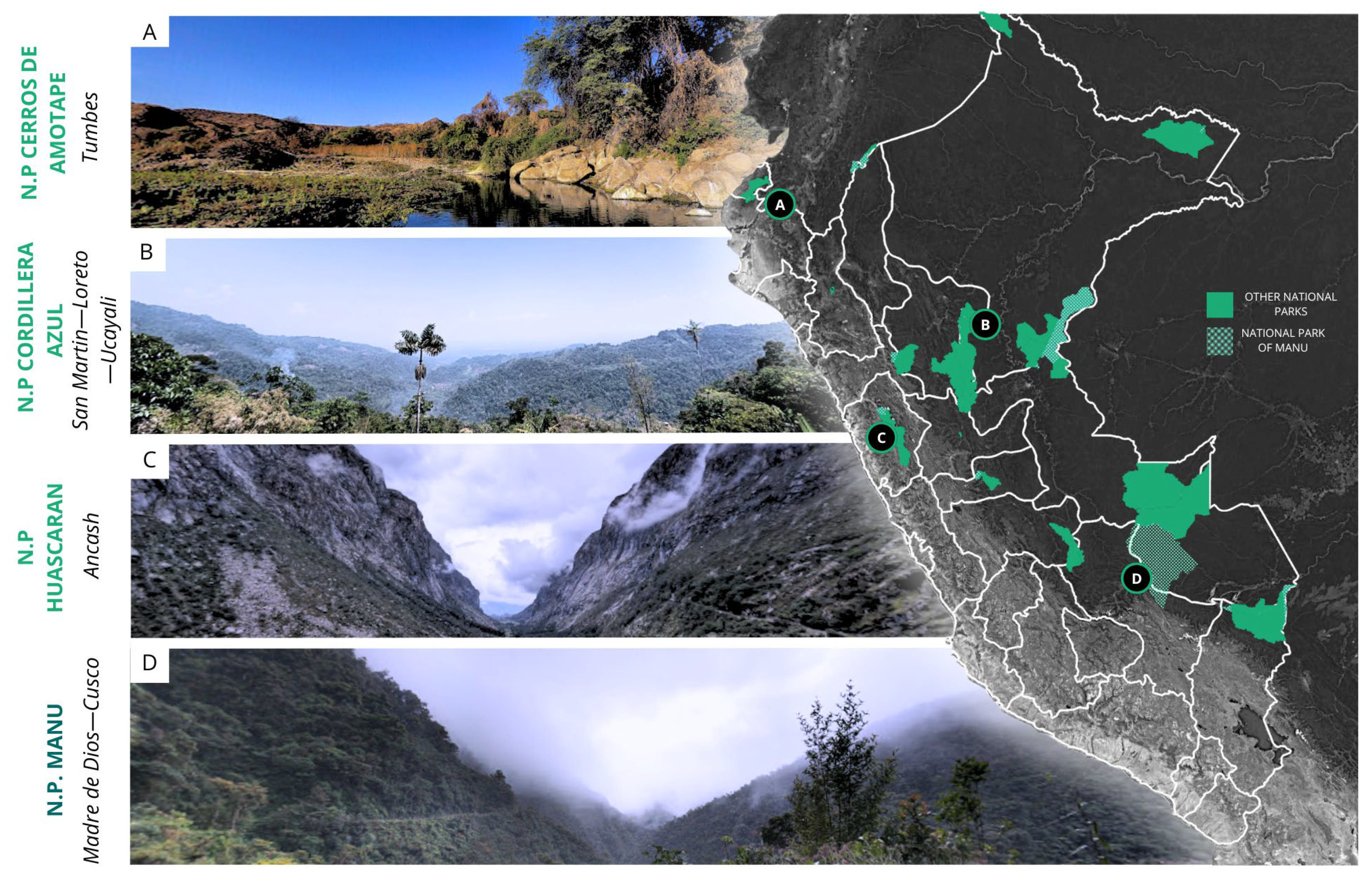 - Servicio Nacional de Áreas Naturales Protegidas por el Estado (SERNANP). Parques Nacionales. Available online: https://www.gob.pe/institucion/sernanp/colecciones/3257-parques-nacionales (accessed on 25 October 2025).