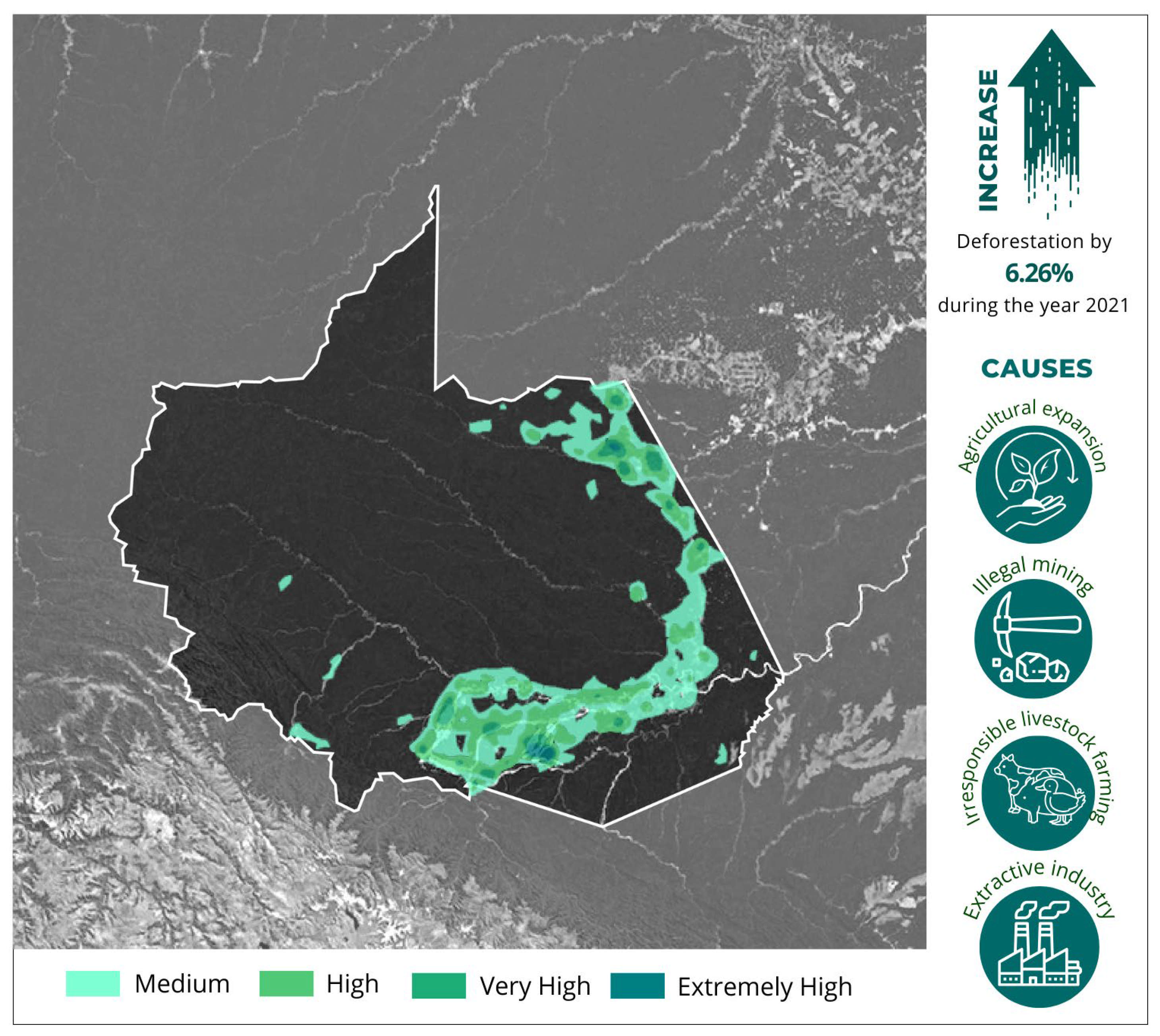 - MAAP (Monitoring of the Andean Amazon Project). MAAP #171: Deforestation in Mining Corridor of Peruvian Amazon (2021–2022); Amazon Conservation Association & Conservación Amazónica–ACCA: Washington, DC, USA, 2022; Available online: https://www.maapprogram.org/mining-corridor-peru/ (accessed on 25 October 2025).