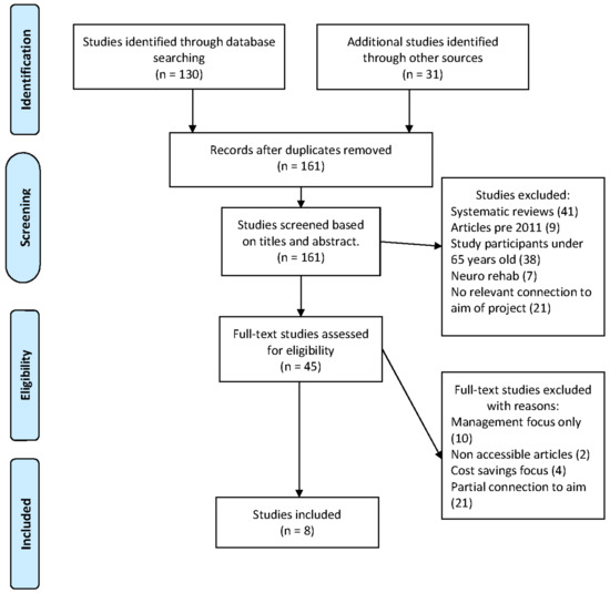 - Beecroft, C.; Booth, A.; Rees, A. The Research Process in Nursing, 7th ed.; Gerrish, K., Lathlean, J., Eds.; Wiley Blackwell: Hoboken, NJ, USA, 2016. [Google Scholar]