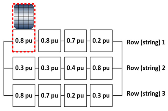 A PV array comprising 12 aged modules connected in a 3 × 4 PV array SP configuration (as depicted in Figure 9) will be utilised to demonstrate this concept.