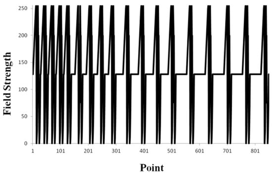 The field used is called Thomas, patterned after a chirp in a communication system [17] (Figure 1). This pattern was created through the Arduino-microcontroller output system, which translated points to a potential difference between +/− 5 V. The duration of each point was set to 3 ms (milliseconds), and the delay between the end of one cycle through the pattern and the beginning of another was also set to 3 ms. The amount of time for one cycle through the pattern was ~ 2.5 s. The electric field was turned on before the planaria were placed in the maze for the field group, and was left off for the entire duration of the sham group.