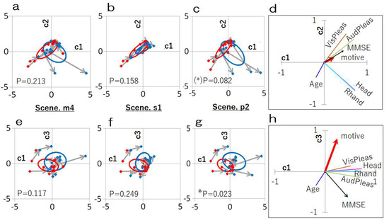 Figure 4, we found no less than three kinds of shifting directions from Day 1 to Day 2: 1. Head/Rhand, 2. VisPleas/AudPlease in the 1st–2nd components and 3. motive and VisPlease/AudPleas/Head/Rhand in the 1st–3rd components. The plots, variance ellipses and shift vectors allowed us to generalize responses by feature per scene. Our results suggest the importance of intervention technology being designed that utilizes diverse testing to elicit individual variation, as well as the importance of repeat testing to allow understanding of time and conditional shift directions [