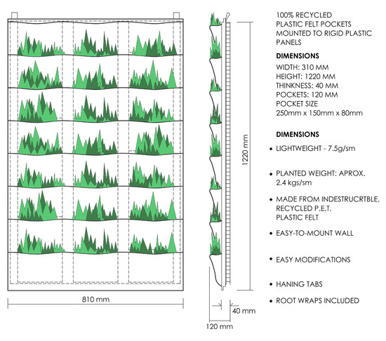 - Florafelt Pocket Panels Spec Sheets. Available online: https://florafelt.com/florafelt-pocket-panels-spec-sheets (accessed on 25 May 2020).