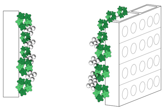 - Susorova, I. Green Facades and Living Walls: Vertical Vegetation as a Construction Material to Reduce Building Cooling Loads. In Eco-Efficient Materials for Mitigating Building Cooling Needs; Woodhead Publishing: Cambridge, UK, 2015; pp. 127–153. [Google Scholar]