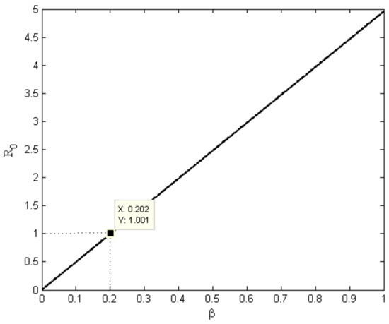 Here, defines time. To study the mathematical behavior corresponding to the equilibrium of system (6), a different value of is used.