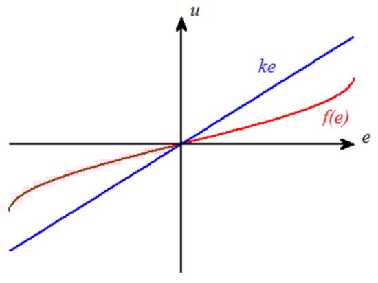 The matrix K forms m, p-dimensional convex surfaces which constricts possible dynamics of nonlinear elements, i.e., for m = p = 1 the nonlinear characteristicf(e) is presented in Figure 2.