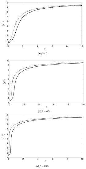 where and . In the limit as f tends to zero (i.e., ) and the standard Hookean solution (18) is recovered. The normalization constant J can be expressed as . The consistency conditions for the system naturally give rise to an equivalent set of equations as derived by [12] who used a change of basis method. The two conditions (11) and (12) still hold, however, as no ansatz is used regarding , the extra degree of freedom is accounted for by an additional consistency condition. We can write