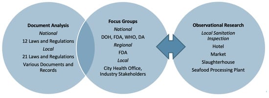 Supporting the aim of the Western Pacific Regional Office’s dialogue, this study explored the needs corresponding to the framework’s strategies in the local context of one LGU in the Philippines. While the FAO’s guidelines for assessing and then building capacity suggested the methodology adopted in this study [11], prominence was also given (based on the WHO’s framework [12]) to risk-based food inspection and enforcement. This study was an extension of the same principal author’s work conducted in 2016 and published in 2019 as an article of research [13]. The site for the study was a city in the Philippines. To protect the identity of each participant situated in the context of that city’s LGU, we will withhold the name of the city.