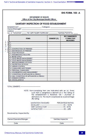 Sanitary Inspection of Food Establishment. Reprinted from the Department of Health’s manual [7].