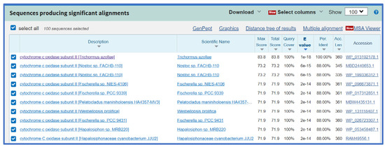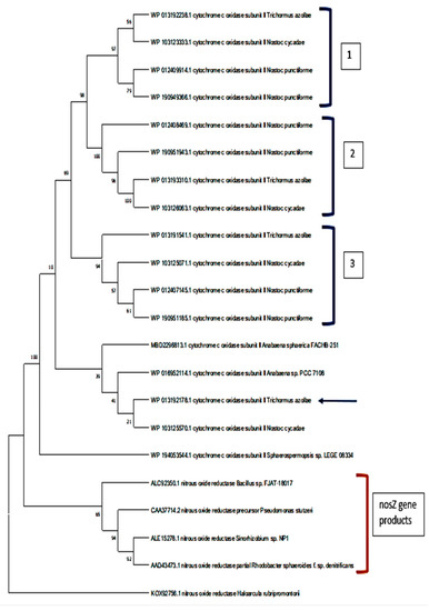 - Jones, K.; Haselkorn, R. Newly Identified Cytochrome c Oxidase Operon in the Nitrogen-Fixing Cyanobacterium Anabaena sp. Strain PCC 7120 Specifically Induced in Heterocysts. J. Bacteriol. 2002, 184, 2491–2499. [Google Scholar] [CrossRef] [Green Version]