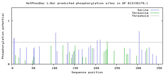- Miller, M.L.; Soufi, B.; Jers, C.; Blom, N.; Macek, B.; Mijakovic, I. NetPhosBac-A predictor for Ser/Thr phosphorylation sites in bacterial proteins. Proteomics 2009, 9, 116–125. [Google Scholar] [CrossRef]