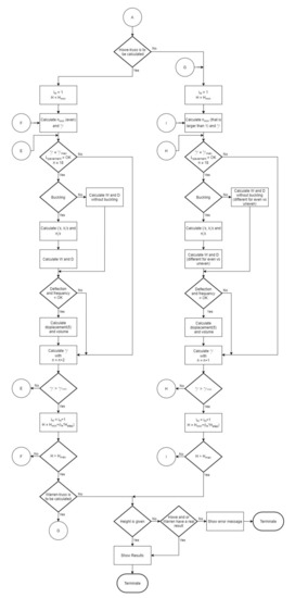 As apparent above, a hierarchy between W and ∆ exists, as ‘design for strength’, i.e., the volume of material, is taken as the point of departure. Both Samyn [9] and Latteur [38] strive for the minimization of volume. Even though efficiency curves for ∆ have been established, these are customarily used to verify afterwards if the displacement, i.e., the stiffness, does not exceed the normative constraints imposed by the design code. In addition, Van Steirteghem [34] proved that if buckling is considered, the displacements are smaller than when buckling is ignored. Both Samyn and Latteur proved that the slenderness optimised through the volume of material (W) is rarely equal to the slenderness that minimises the displacement (∆). However, minimising ∆ is only important to the extent that it does not exceed the normative criteria. When the indicator of first natural frequency is introduced in the optimisation, a constraint that considers the dynamic behaviour of the structure is added. Therefore, the general optimisation procedure can be formulated as follows: