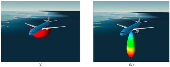 The directional antenna of AMS was pointed to the nadir; however, it should be noted that in practice, the direction of it will be to the opposite direction of the coastline since it communicates with the maritime or aeronautical station located outside of the territorial airspace or waters of the coastal state that deploys 5G NR. Figure 5 presents modeling of the antenna patterns of AMS omnidirectional and directional antennas.