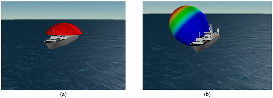 The directional antenna of MMS was pointed to the opposite direction of the coastline since it will communicate with the maritime or aeronautical station located outside of the territorial airspace or waters of the coastal state that deploys 5G NR. Figure 6 presents the modelling of the antenna patterns of MMS omnidirectional and directional antennas.