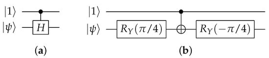 Even a controlled version of the common Hadamard gate in (a) is feasible as shown in (b) using gates and a .