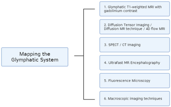 The glymphatic system is a recently discovered waste clearance system that has been associated with many diseases including Alzheimer’s disease, hemorrhage, and neurotrauma. Thus, it opens an array of research opportunities to improve and understand their prognoses. Currently, ex vivo fluorescence microscopy of brain slices, MRI, and macroscopic cortical imaging are the most common ways of determining glymphatic system function. However, as discussed above, to improve future translational efforts, the development of a minimally invasive and safe imaging approach is necessary. Further research should also focus on comparing the depth, speed, and other parameters of these imaging methods in the setting of glymphatic system mapping.