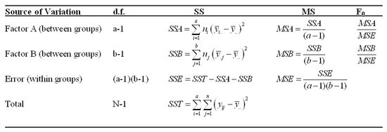 Formula for two-way ANOVA test [18].