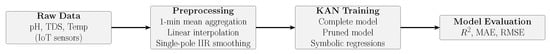 - Original model (KAN): Two layers configured as , , using all three input variables (pH, TDS, temperature).