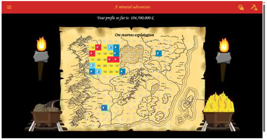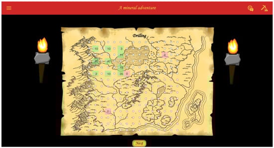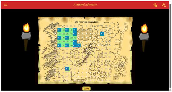 The simulation game was developed within the framework of the research program “VirtualMine: A Modeling Tool for Wider Society Learning,” sponsored by the European Institute of Innovation and Technology (EIT), Raw Materials Hub—Regional Center Greece, in 2018. It is available online at www.geostatistics.eu/exercise.html (accessed on 30 September 2025). The aim of the game is to enhance learning by providing an enjoyable learning experience. More specifically, the main objectives are to acquaint students with basic concepts of mineral research, motivate students to develop and test their intuition, and illustrate the challenges of making decisions under uncertainty.
