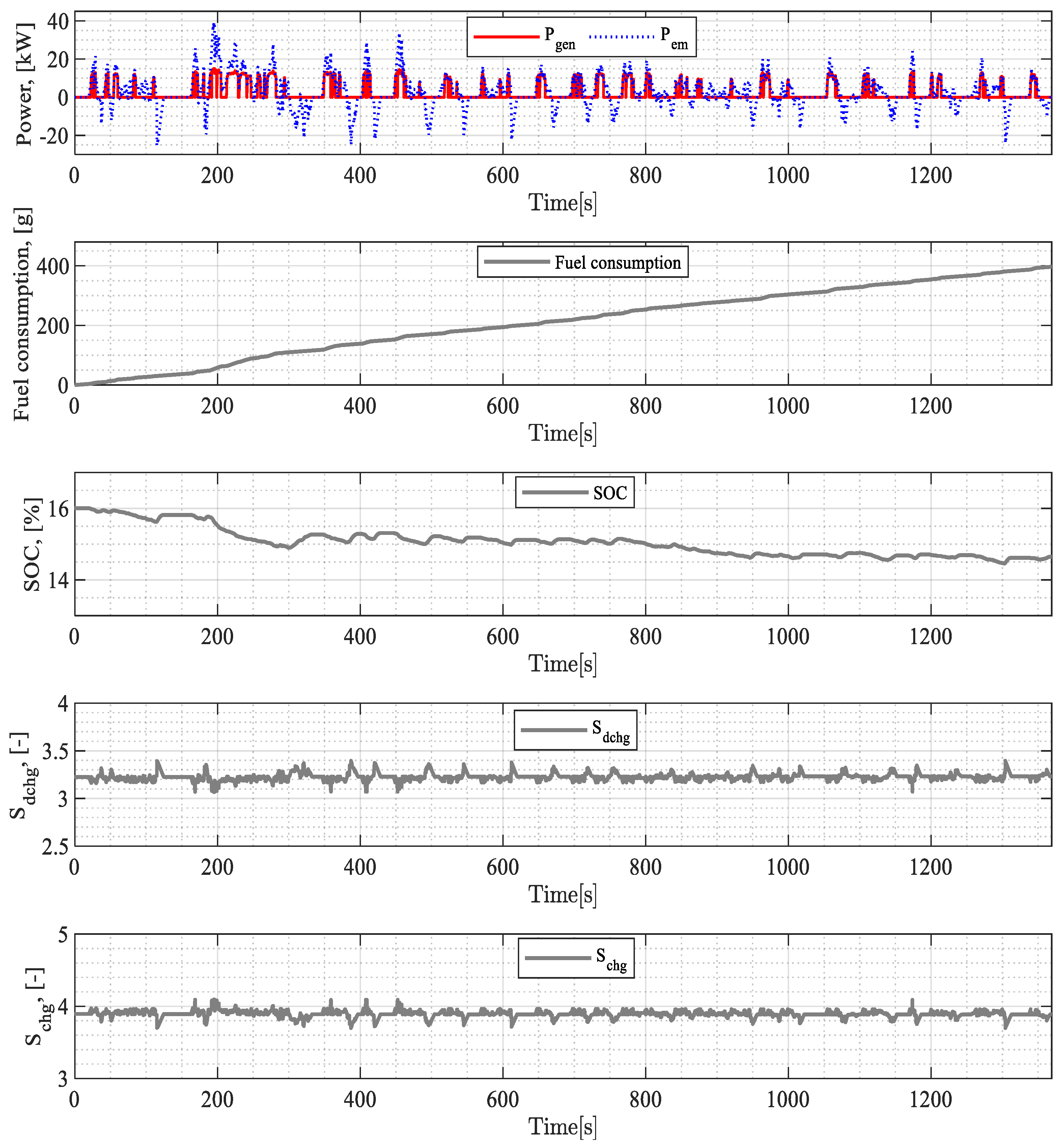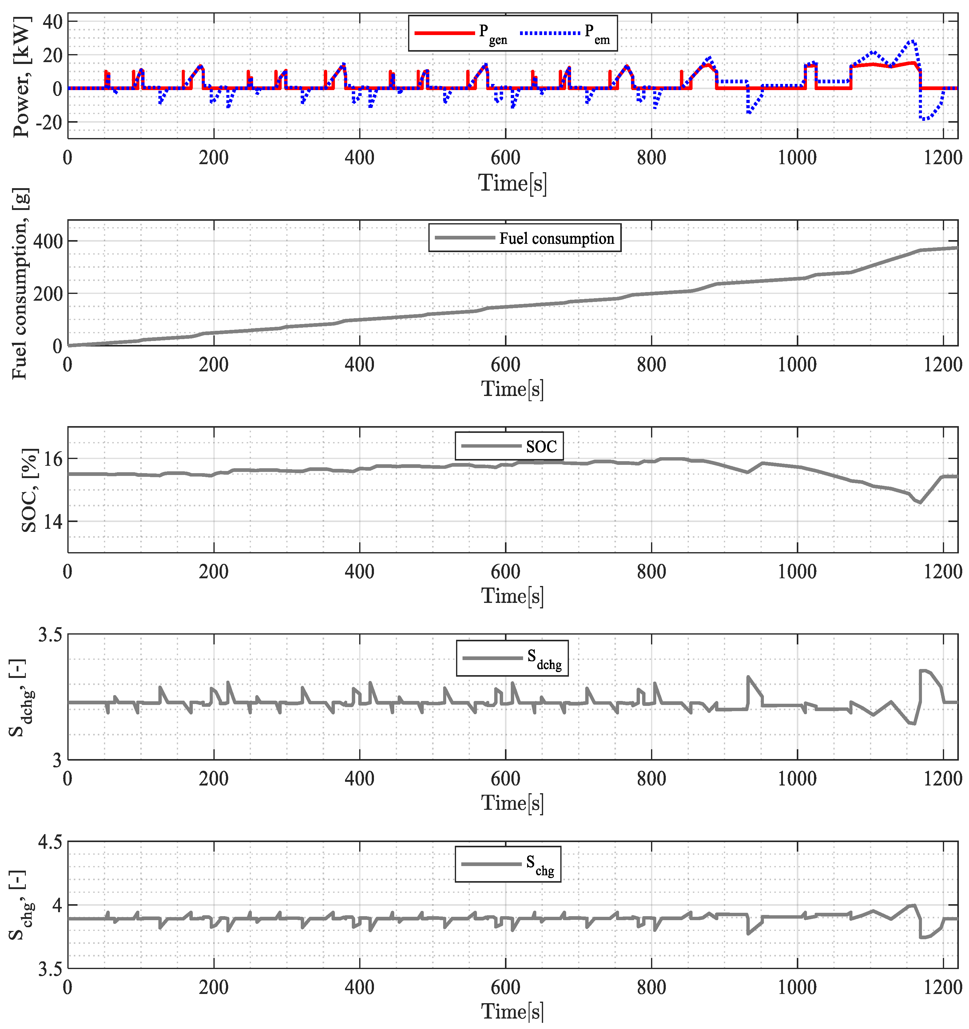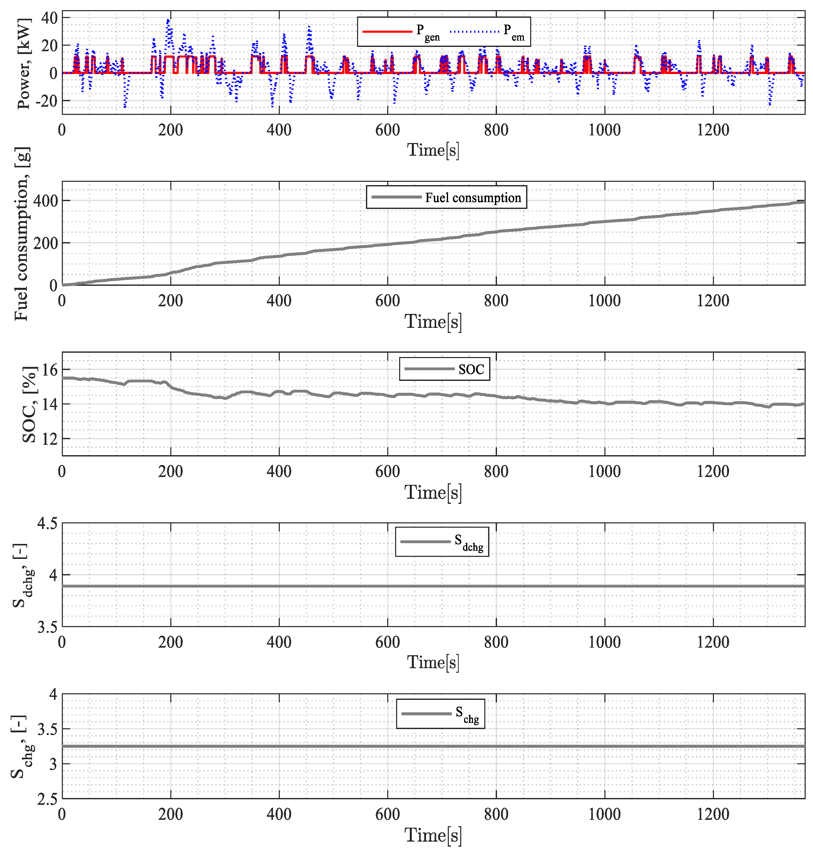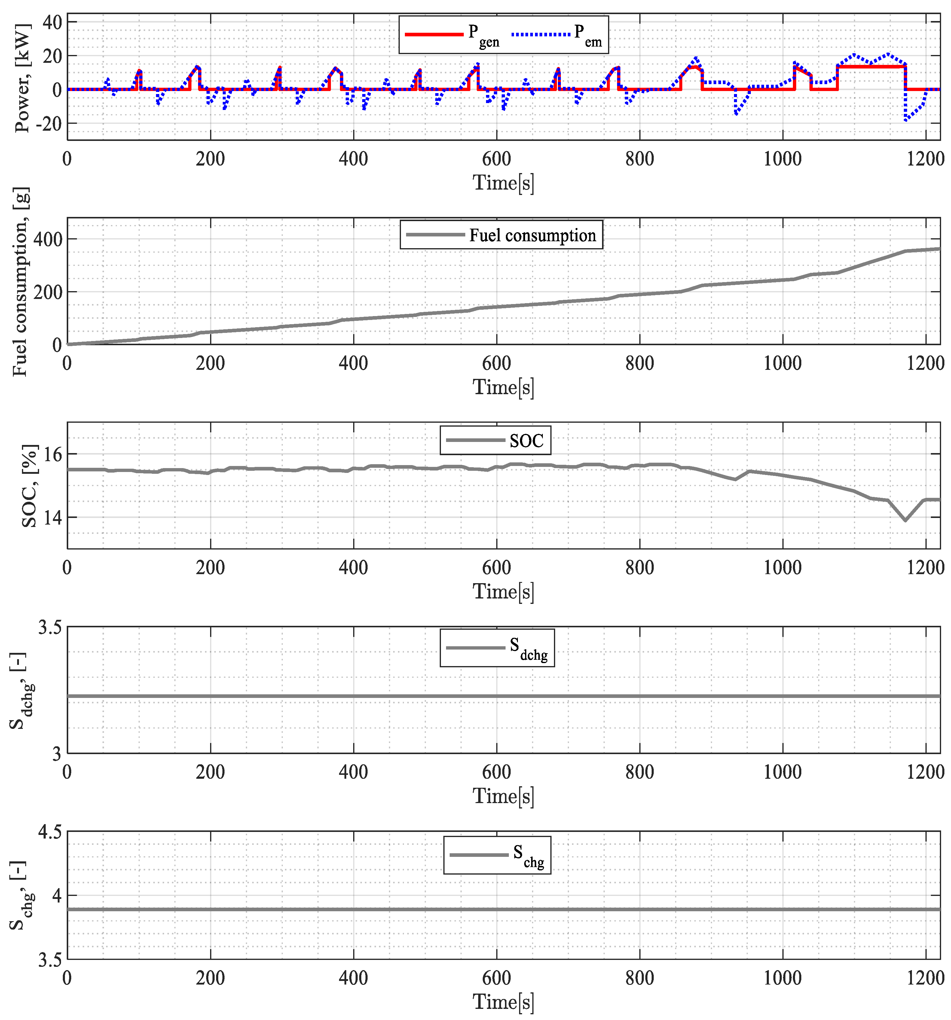 - Keldiyarova, M.; Ruzimov, S.; Bonfitto, A.; Mukhitdinov, A. Comparison of two control strategies for range extender hybrid electric vehicles. In Proceedings of the 2022 International Symposium on Electromobility (ISEM), Puebla, Mexico, 17–19 October 2022; IEEE: Piscataway, NJ, USA, 2022; pp. 1–6. [Google Scholar] [CrossRef]