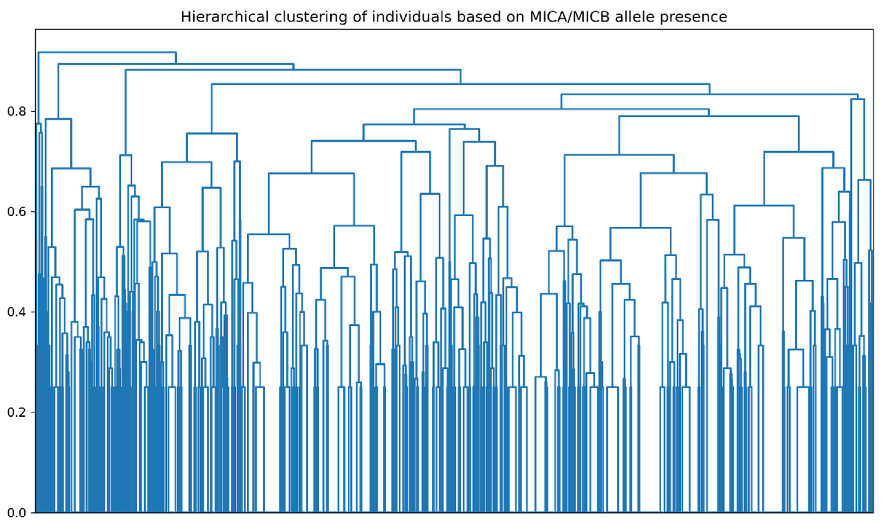 Figure 11) revealed blocks of individuals sharing highly similar MICA/MICB repertoires, broadly corresponding to the k-means clusters but also containing smaller subgroups driven by particular alleles or allele combinations.