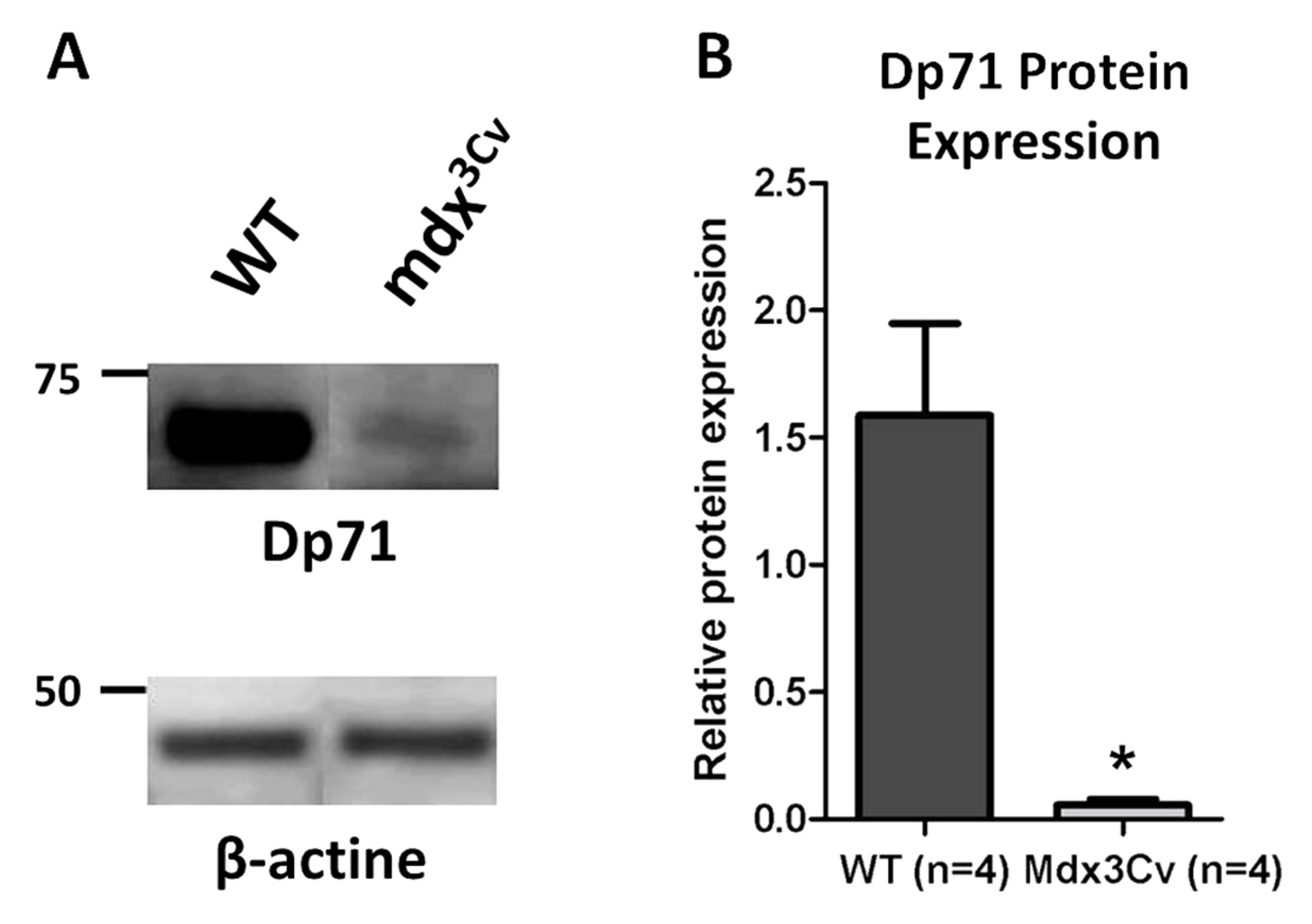 3.1. Dp71 Expression in mdx3Cv Mouse Model