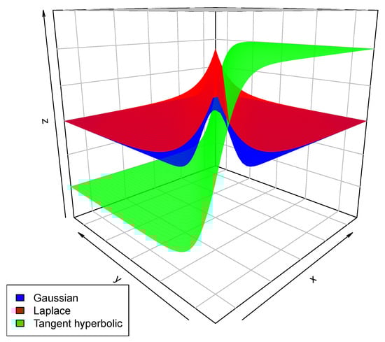 Illustration of Gaussian, Laplacian, and hyperbolic tangent kernels.