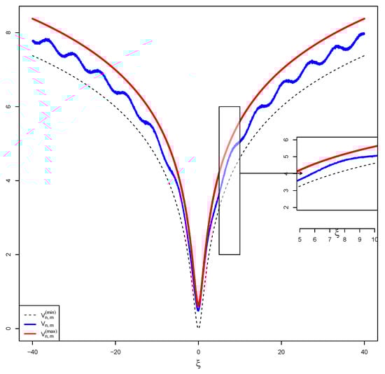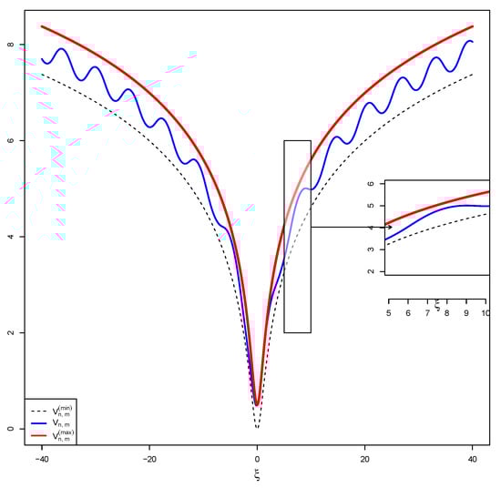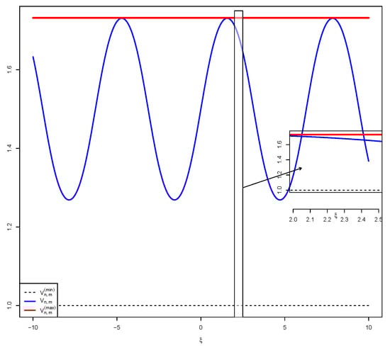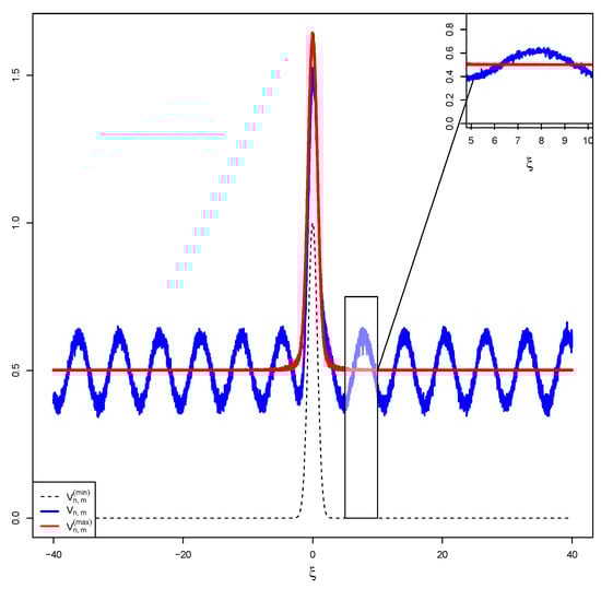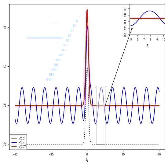 Let V be a stationary solution of the integro-differential Equation (5). According to Hammerstein [], such a nontrivial solution exists if is symmetric positive definite and G satisfies , where are positive constants. We know that V is defined over the domain as