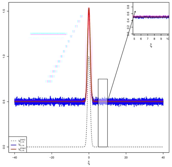 (4) Ultimately, the point of the first three simulations is the hope to extend this type of estimator beyond solutions of DNF. In fact, Equation (1) can be considered a linear Boltzmann equation with stochastic kernel if, instead of thinking of as the position of a neuron, we think of it as the velocity of a particle and as the velocity distribution overtime. In this case, nontrivial solutions are now solutions of the nonlinear Markov operator where , which by the Hille–Yosida theorem exist. The proposed estimator provides in a sense another way of thinking about this problem using successive approximations (see []).