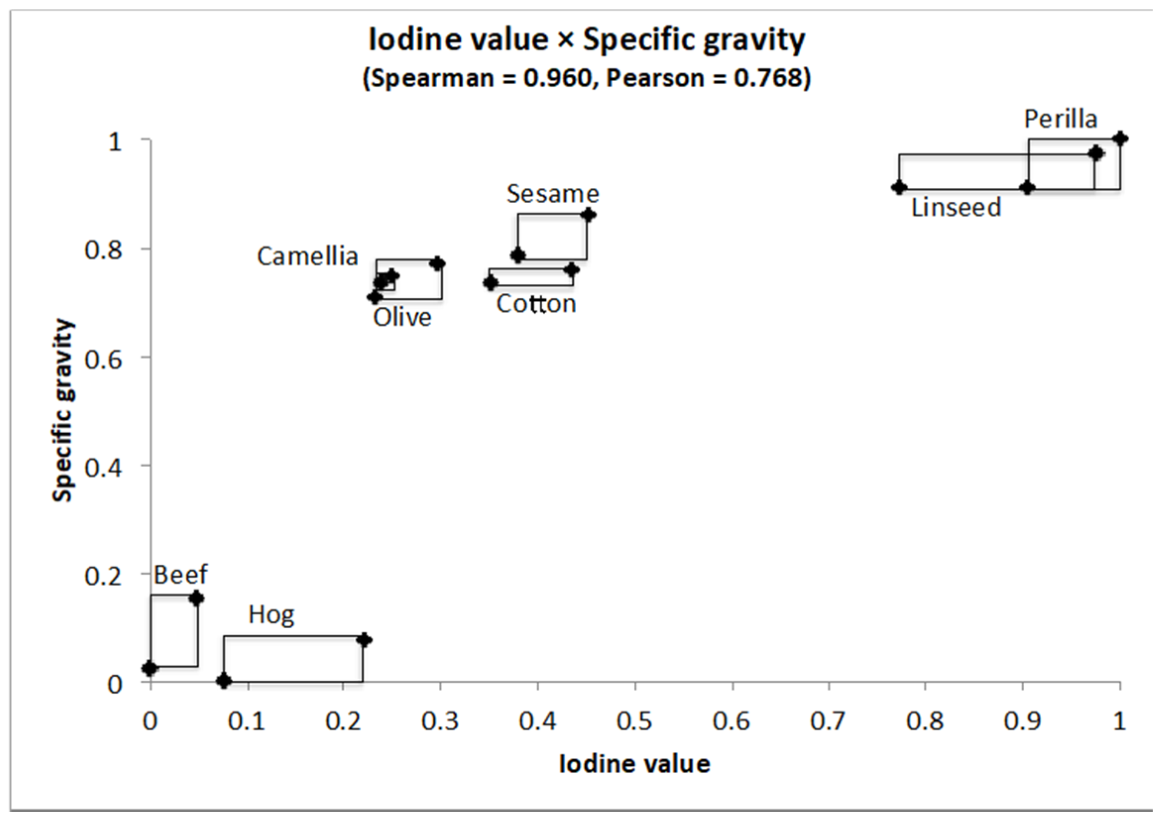 Descriptions using specific gravity and iodine value.