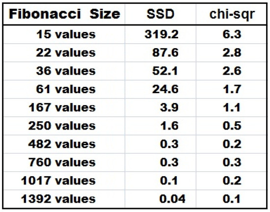 Hence it would be erroneous to blindly apply the chi-square test in this case of the Fibonacci series, yet, it is mistakenly presented as some sort of a valid measure of deviation or compliance with Benford’s Law! The fact that the application of the chi-square test indeed correctly certifies the Fibonacci series with compliance with Benford’s Law does not absolve it in any way of misleading us about its methodology and its relevance.