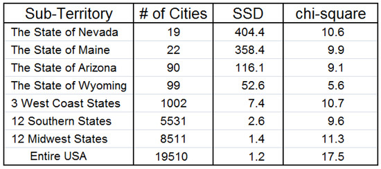 Table of SSD and chi-square Results for 7 Sub-Territories—US Population.