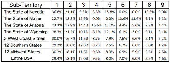 Table of the First Digit Distributions for 7 Sub-Territories—US Population.