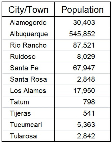 Let us critically and open-mindedly examine a tiny sample collected from that vast US data set, and focused only on a few cities and towns in the state of New Mexico as seen in the table of Figure 32.