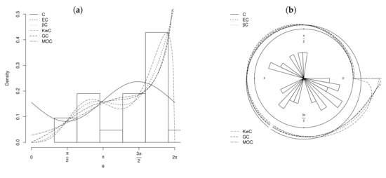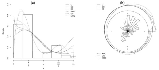 - Abe, T.; Pewsey, A.; Shimizu, K. On Papakonstantinou’s extension of the Cardioid distribution. Stat. Probab. Lett. 2009, 79, 2138–2147. [Google Scholar] [CrossRef]