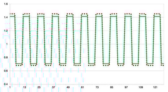 Note, finally, that this example is not compatible with the LSP theory, since for some , and being a piecewise constant is not a differentiable function of time. Additionally, the asymptotics related to that theory will be difficult to interpret, since is periodic with a fixed period.