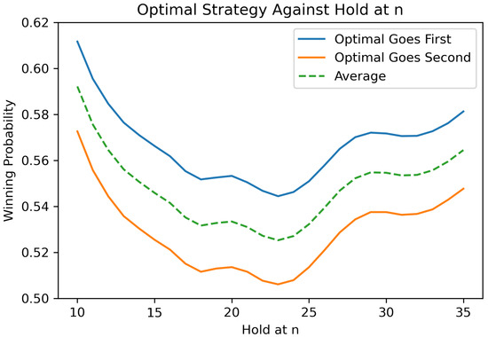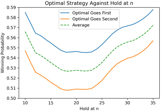 | Hold at n | Optimal Goes First | Optimal Goes Second | Average Probability |